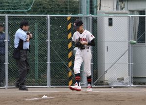 ピッチャーゴロをファーストに悪送球。ボールデッドになるかと思われましたが、ライトがナイスカバー。