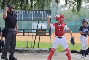 延長戦、タイブレークで相手チームに4点を取られましたが、その裏に連続安打で5得点を取り返し、辛勝です。